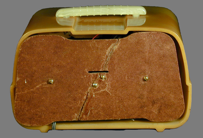 The catalin cabinet on this radio has shrunk so much that the back will no longer fit into it.