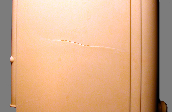 The image below shows a classic example of a heat crack. Very common in plaskon of this era but they usually end at an edge.